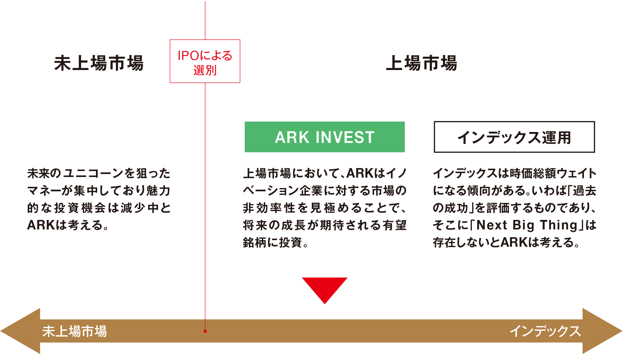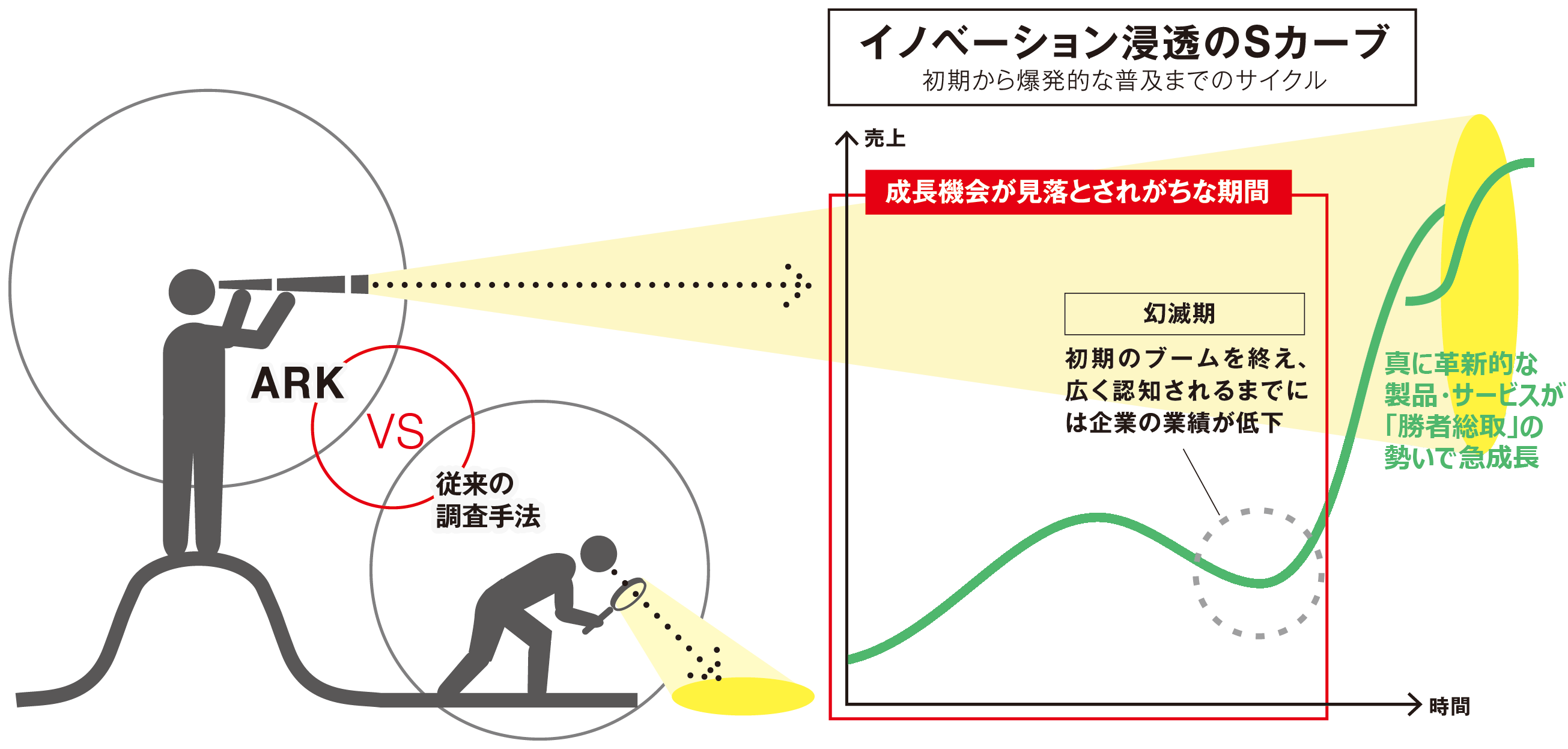 ARKは技術の急速な進化に沿って将来の爆発的な成長を予測しながら、市場が無視または過小評価している3-5年の成長機会に着目。