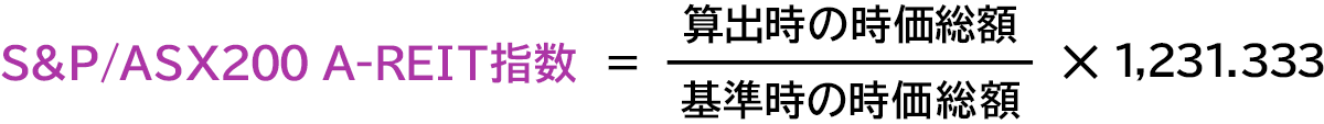 S&P/ASX200 A-REIT指数は、S&P が公表している指数で、オーストラリア証券取引所の上場不動産投資信託の投資収益を時価総額比率で加重平均し、指数化したものです。