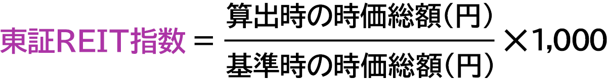 東証REIT指数は、東京証券取引所に上場している不動産投信(J-REIT)全銘柄を対象とした「時価総額加重型」の指数です。算出方法は、基準時を平成15年(2003年)3月31日(終値)に置き、その日の時価総額を1,000として、その後の時価総額を指数化したものです。
