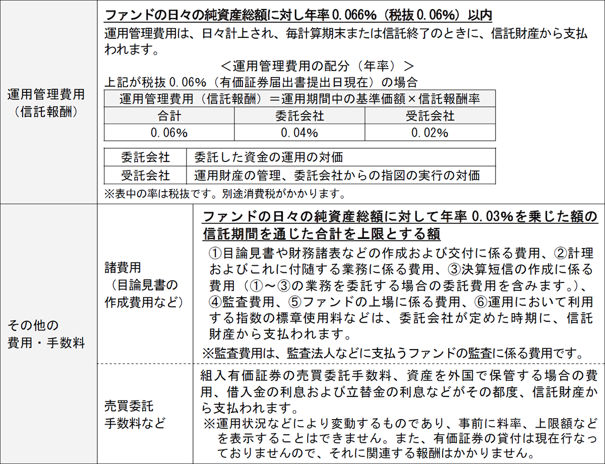 ※投資者の皆様にご負担いただくファンドの費用などの合計額については、保有期間や運用の状況などに応じて異なりますので、表示することができません。