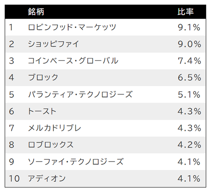 ARKの助言を受けて当ファンドがロビンフッドを上位10位に入る比率で組み入れたのは、実は今から約4年も前の2021年11月末でした。それ以来、ロビンフッドは当ファンドの上位銘柄の常連です。