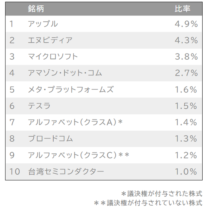 組入上位10銘柄(全2,515銘柄)2024年12月30日時点