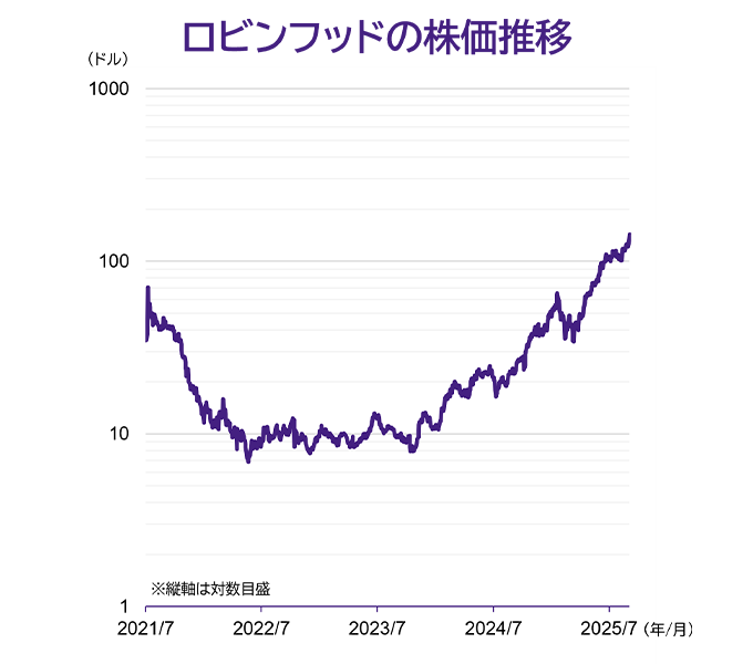 ちなみに、S&P500がロビンフッドを指数に組入れたのは2025年9月です。S&P500は時価総額の大きさを第一とした明確な指数採用の基準を設けており、それに淡々と従います。ロビンフッドはその基準に達したので、指数の採用銘柄に仲間入りしたというわけです。