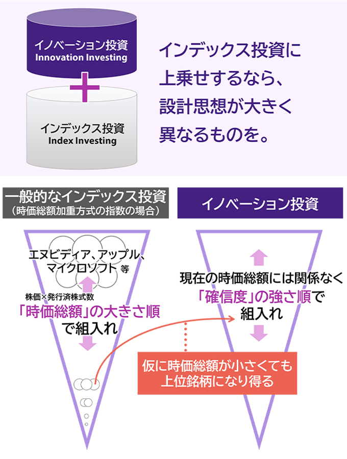 それら「ベースファンド」に上乗せする「トッピングファンド」として、イノベーション起点の投資や企業成長のダイナミズムを享受する投資、あるいは時価総額加重方式のインデックス投資を補完する方法について考えてみるキッカケとなれば嬉しく思います。