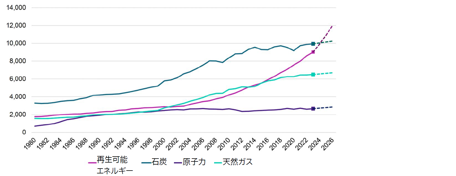 チャート2:世界の電源区分別の発電量(TWh)