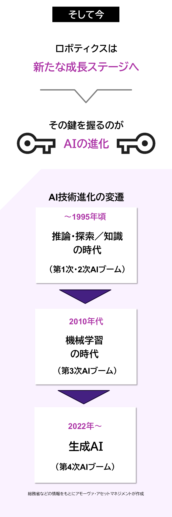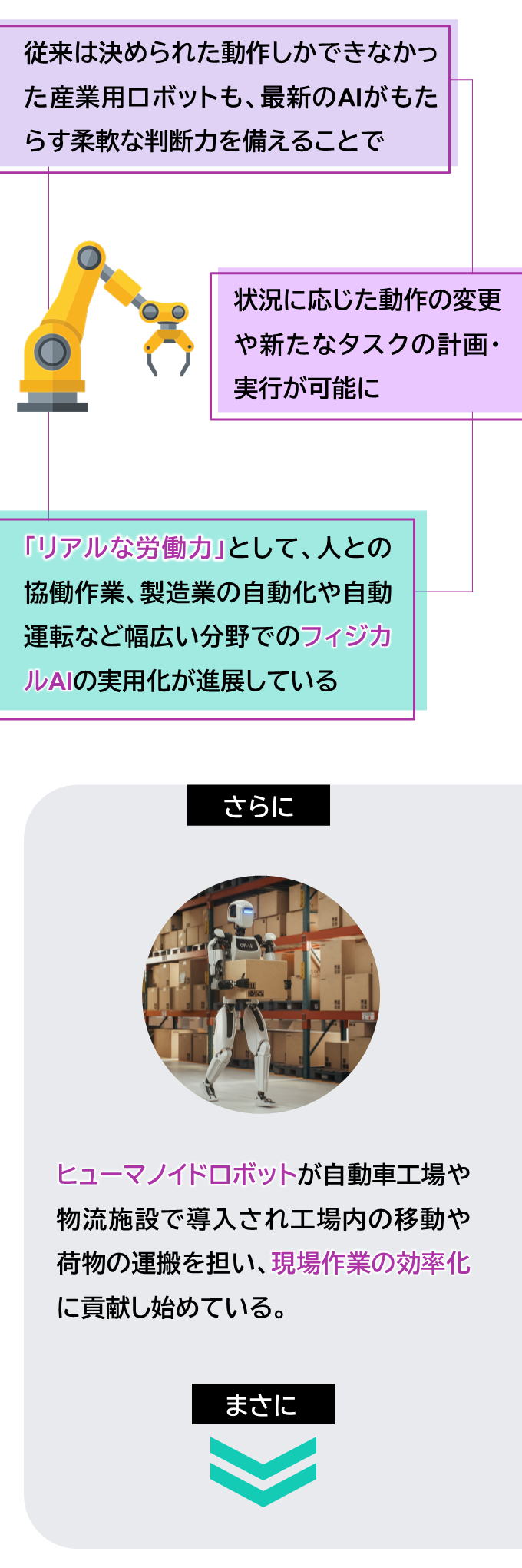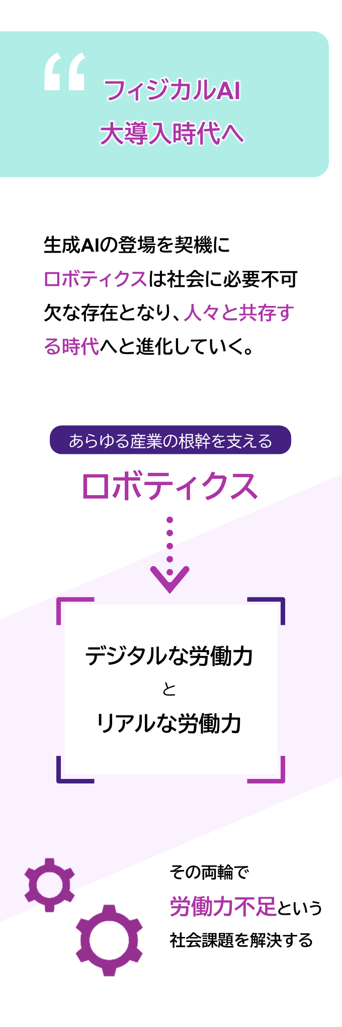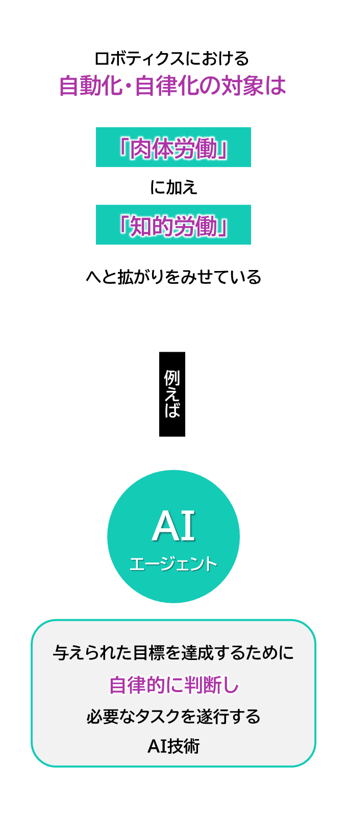 そして今、生成AIの進化を背景に、ロボティクスは新たな成長ステージに入りつつあります。AIエージェントという「頭脳」と、フィジカルAIという「身体」が結びつくことで、ロボットは現実世界で自ら考え、判断し、行動する存在へと進化しています。