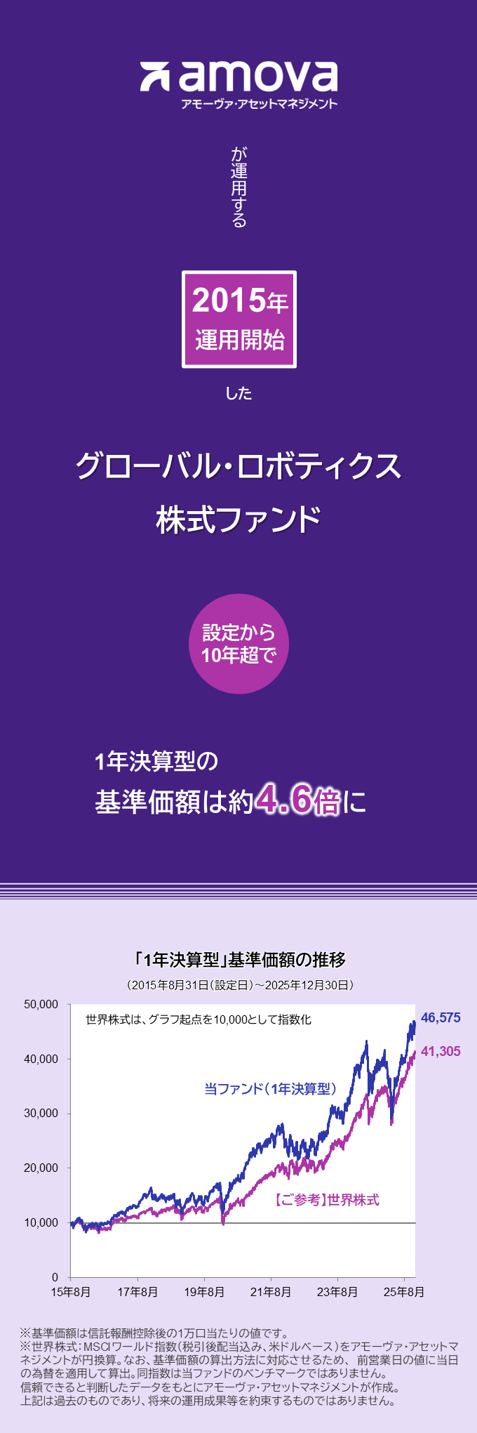 アモーヴァ・アセット(旧 日興アセット)が運用する『グローバル・ロボティクス株式ファンド』は2015年8月の設定から10周年を迎えました。テクノロジーの潮流が目まぐるしく移り変わる中で、ロボティクスという成長テーマを一貫して見つめ続けてきたのが、当ファンドの実質的な運用を行なうラザード社(ラザード・アセット・マネージメント・エルエルシー)です。
