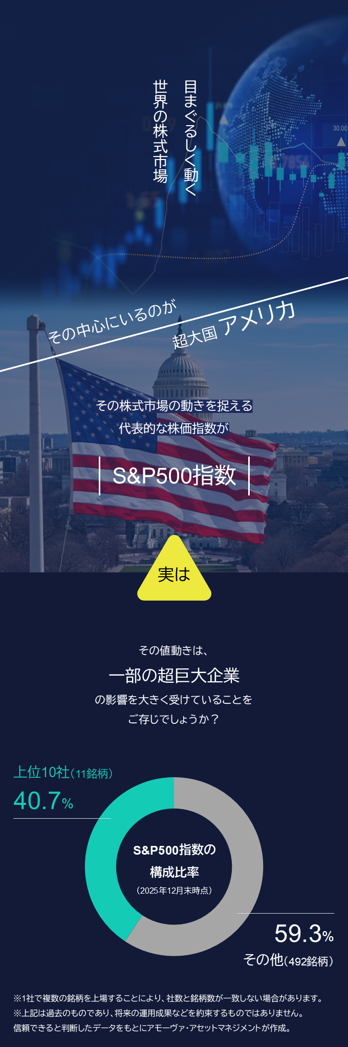 新NISA(少額投資非課税制度)で人気を集める、S&P500指数に連動するインデックスファンド。実は、その値動きを大きく左右しているのは、一部の超巨大企業だということをご存じでしょうか。