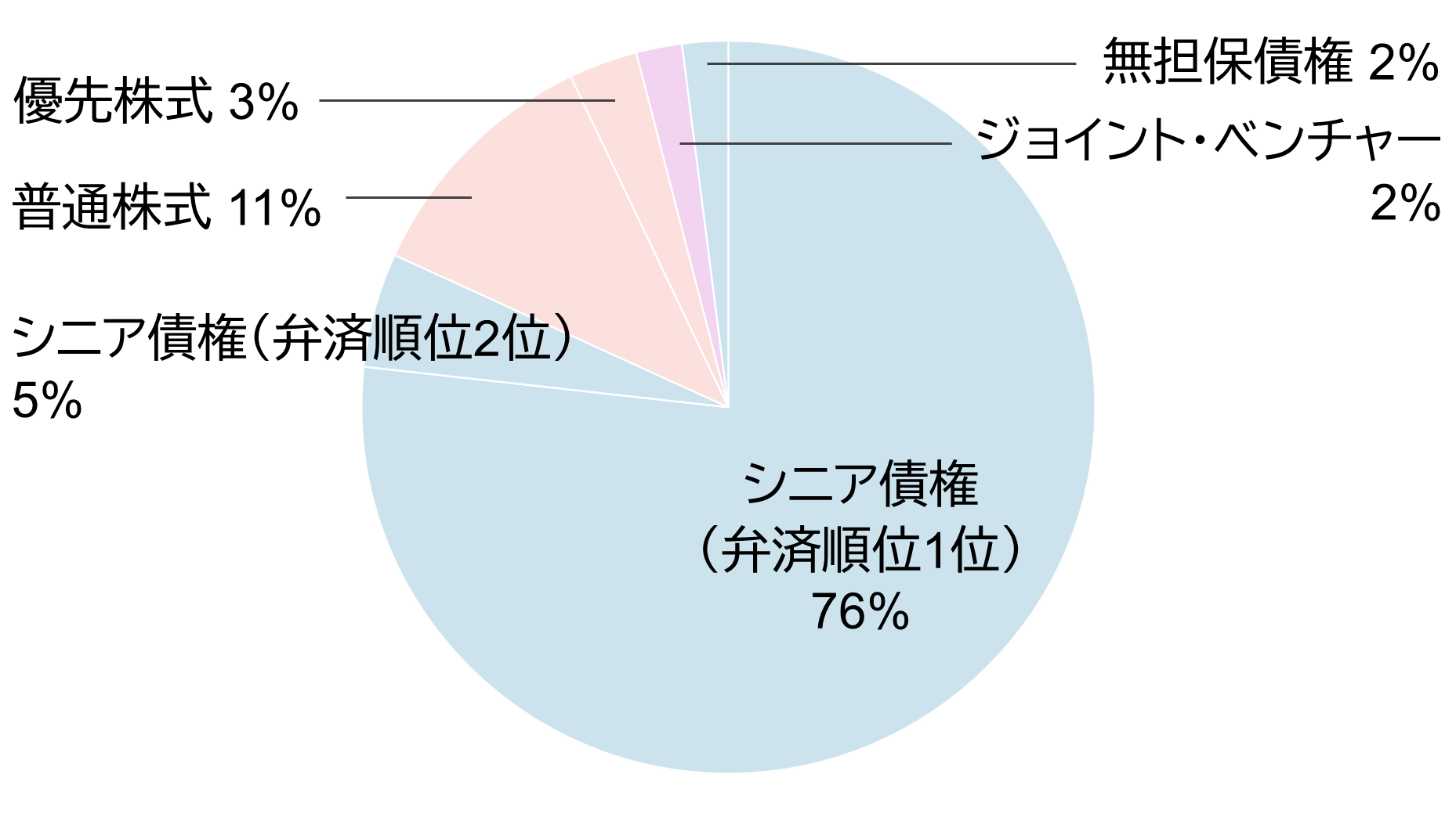ABDCにおける中堅企業への融資は、倒産時に優先的に弁済が行われるシニア債権が中心となっており、基本的には担保が付与されています。