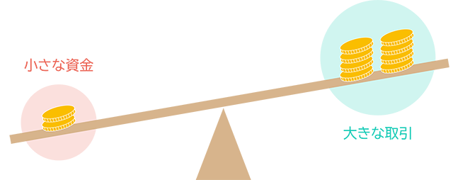 先物取引とは、ある商品(原資産)を、将来の決められた期日に、あらかじめ決められた価格で売買することを約束する取引です。 先物取引では、原則として損益が発生した際の差額のみをやり取りする「差金決済」が採用されています。これにより、実際に商品を受け渡すことなく、価格変動による利益や損失だけをやり取りすることができます。 この仕組みによって、少ない資金で大きな取引(例えば、元本2千円で1万円分の取引)を行なうことが可能になります。このように、元手以上の取引を行なうことを「レバレッジ」と呼びます。 一方、株式などの現物資産を取引する場合は、購入する資産の金額と同額の現金を用意する必要があります。つまり、1万円分の株式を買うには、1万円の資金が必要です。この点が、先物取引と現物取引の大きな違いです。 レバレッジは、外国為替証拠金取引(FX)などでも活用されている仕組みです。レバレッジを使って実質的な投資金額を大きくすると、期待できるリターンも大きくなりますが、それに伴ってリスクも高まるため、メリットやデメリットをきちんと把握したうえでの運用が大切になります。 ![]() 上記はイメージです。 |