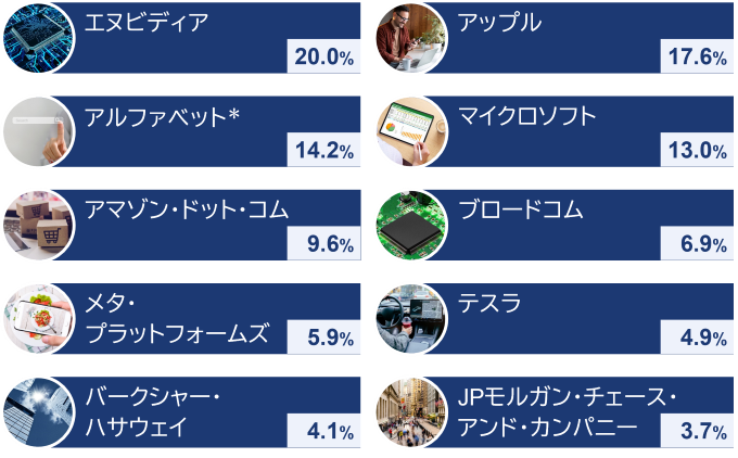 当ファンドは、米国の時価総額上位10社に注目し、その株式に集中投資するインデックスファンドです。