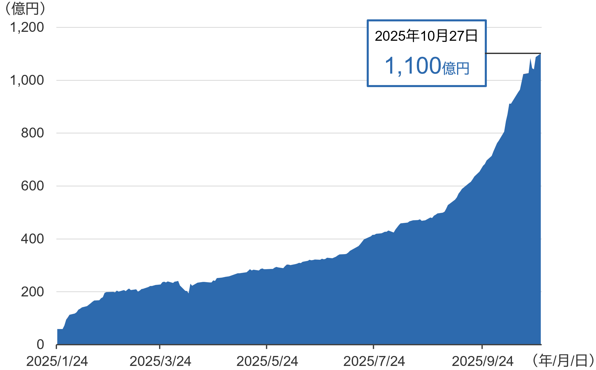 2025年1月24日に運用を開始した「Tracers NASDAQ100ゴールドプラス」の純資産総額が、10月17日に1,000億円を突破いたしました。運用開始から約9ヵ月。この間に見られた資金流入の動きは、投資家の皆様からの期待の表れであると感じています。